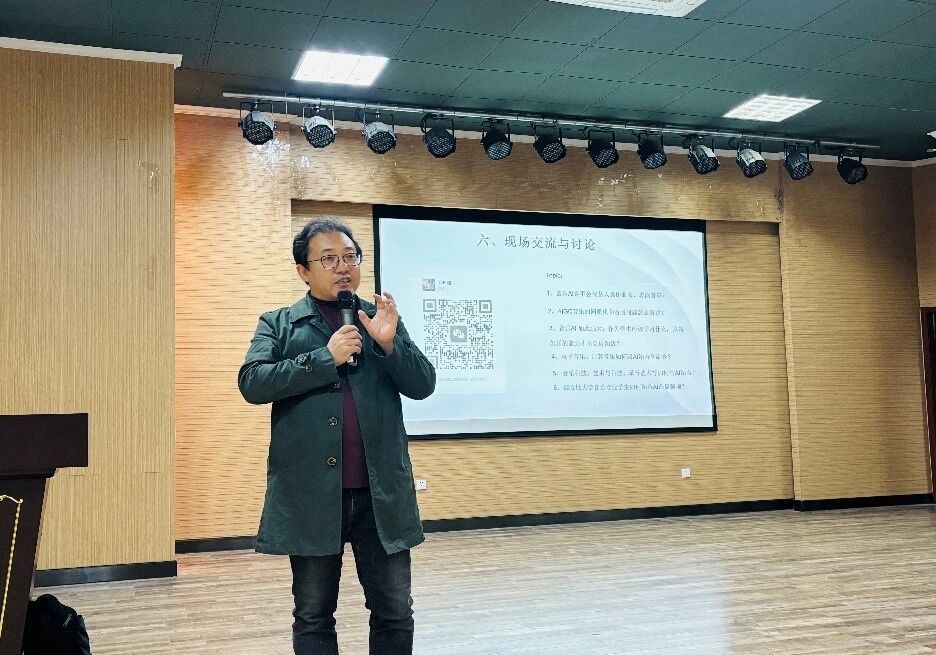 李鹏云教授以专业系统的讲解,从历史发展的角度系统梳理了音乐人工智能演进的三个阶段:第一阶段专家系统算法作曲时代,通过将作曲手法、和声学等专业技术转化为数学规则,实现基础的音乐创作,但受限于规则刚性;第二阶段风格模仿时代,借助机器学习技术,通过分析作曲家作品特征实现不同风格音乐的生成,突破了统计规律学习的瓶颈;第三阶段深度学习时代,以生成式人工智能为代表,利用大规模数据集训练实现具有艺术水准的音乐自主创作。在应用展示环节,李鹏云通过丰富的音频案例,现场演示了AIGC、Suno Studio等工具在旋律生成、和声编排等场景的实践运用,展现了生成式AI在作曲、编曲、音乐制作等领域的创新应用,并特别强调提示词在AI音乐创作中的关键作用。同时,李鹏云从课程建设、教学改革、创作实践等方面介绍了国内外院校在音乐人工智能教育中的探索经验,为我院相关专业建设提供了重要参考。最后,他就"AI会否取代音乐创作者"“面对AI作为学生或教师应具备怎样的能力”"如何评估AI音乐作品的艺术价值"等问题与我院师生展开深入交流,提出了专业性的见解。王建成副院长在总结中指出,当前音乐教育创新的重点在于师生如何把握人工智能发展机遇,优化教学、科研与创新模式。他强调,"人工智能+音乐"课程建设是未来专业发展的重要方向,全体教师应主动探索AI技术与音乐课程的融合路径,推动人才培养模式的转型升级。