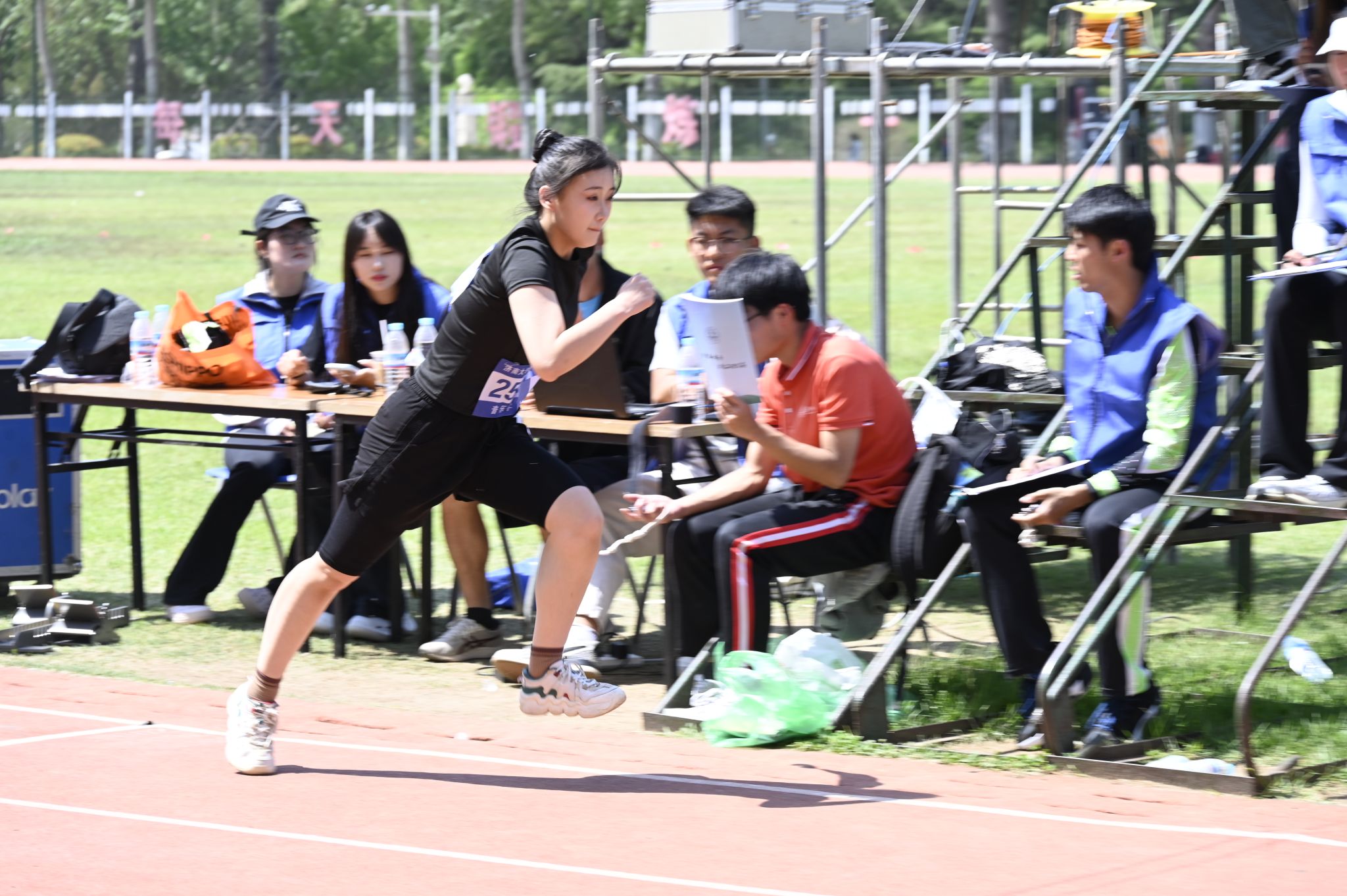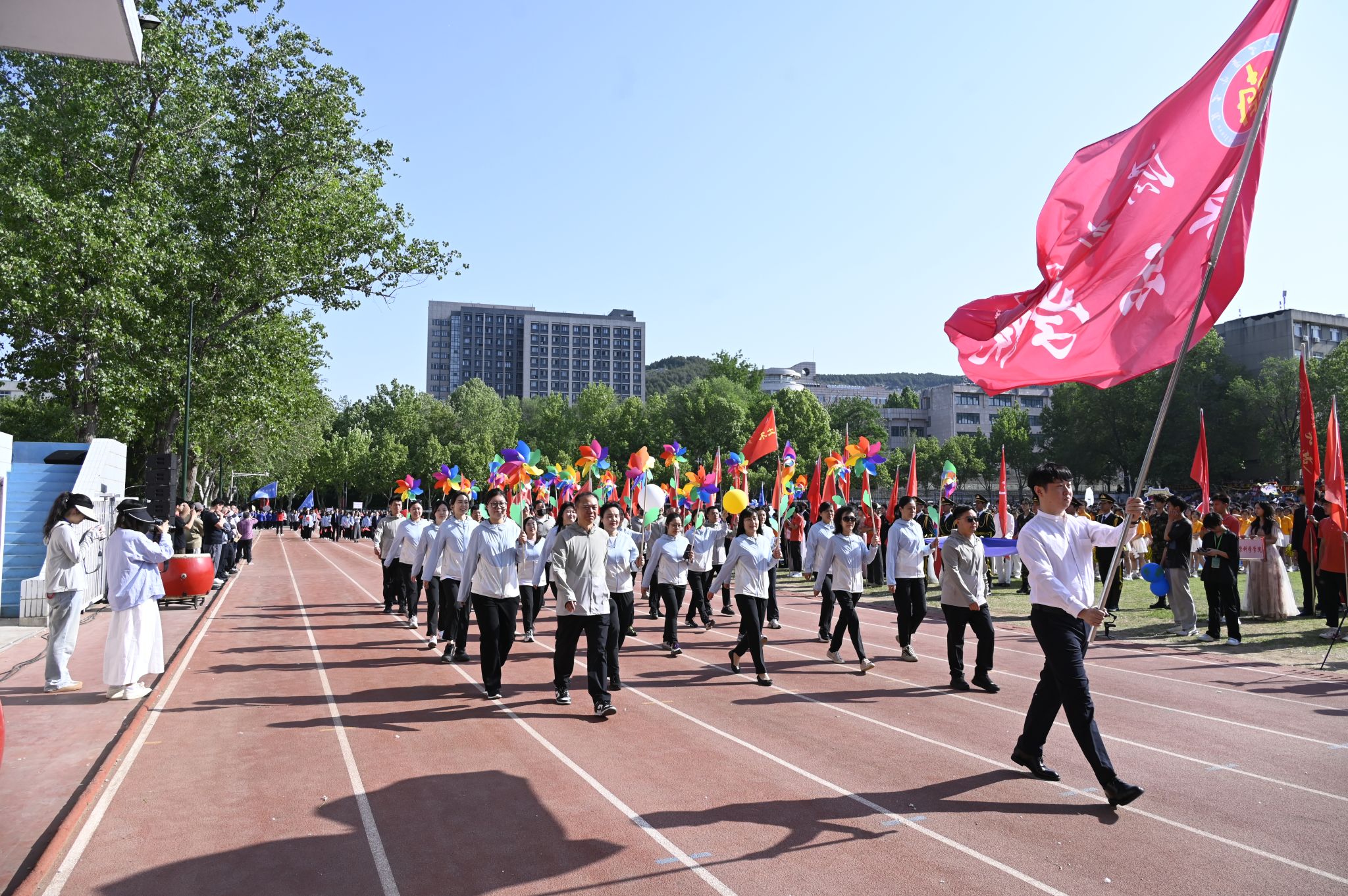 比赛现场,欢呼声、呐喊声交织成一曲激昂的交响曲。观众席上,师生们热情高涨,他们的加油助威声如汹涌浪潮,一波接着一波,为运动员们注入源源不断的动力,营造出热烈而充满活力的赛场氛围。我院教职工运动员们更是斗志昂扬,在各个项目中全力以赴、奋勇争先。
