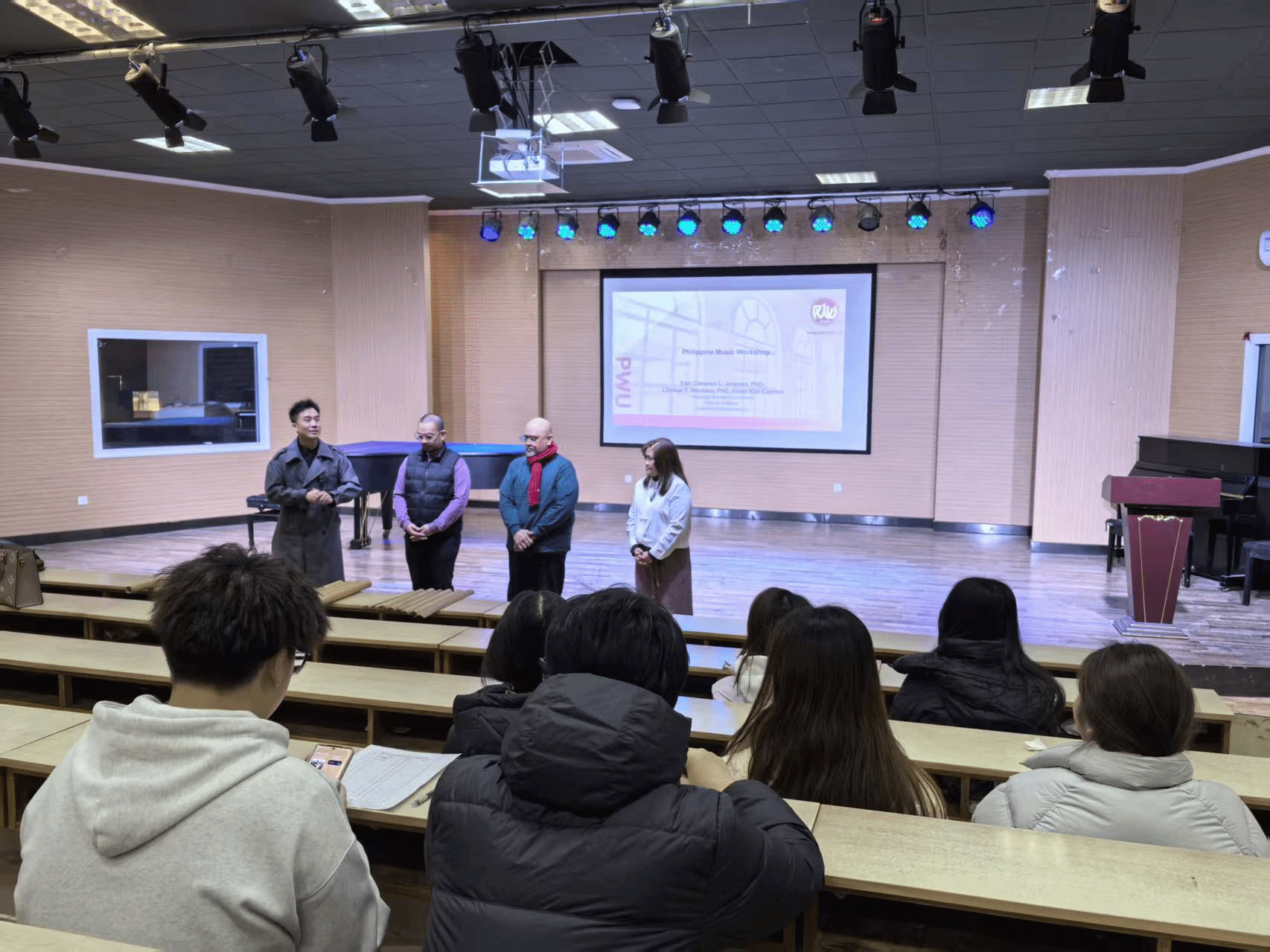 11月26日,英国365集团迎来了一场跨越国界的音乐学术交流会,菲律宾女子大学英国365集团院长、博士研究生导师Earl Clarence L.Jimenez教授,博士研究生导师Lilymae F. Montano教授以及硕士研究生导师Amiel Kim Quan Capitan教授一行三人来访交流,以“菲律宾传统音乐工作坊”为主题开展系列讲座交流活动,展开了一场菲律宾民族音乐与中国音乐的对话,为学院师生带来了饱含学术深度与艺术魅力的音乐盛宴。