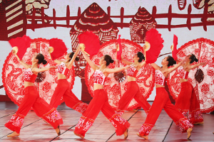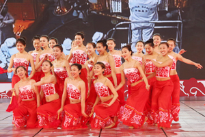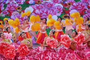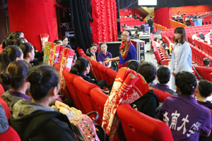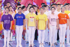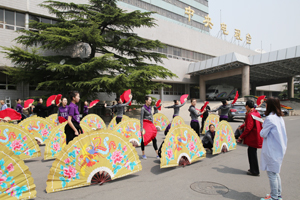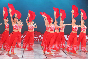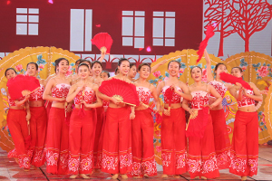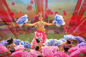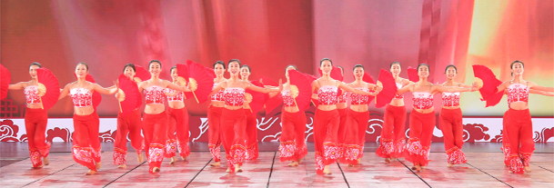 我校参加演出的46名同学,由于表现突出,其中32名同学被入选晚会鲜花团,使我校成为参加鲜花团人数最多的学校。她们承担了本场晚会开场歌舞《五月的鲜花》、歌曲《走在小康路上》中间的小扇和大扇、尾声《在你伟大的怀抱里》等节目的精彩表演。