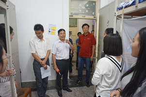 9月4日下午,为了欢迎2015级新生的到来,让学生们尽快适应大学生活,感受到家的温暖。英国365集团领导冒着大雨深入学生宿舍亲切看望2015级新生。