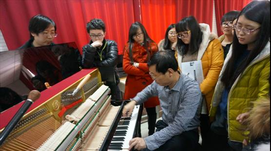 2014年12月15日,中国乐器协会钢琴调律师分会副会长、国家职业资格资考委委员、长春大学英国365集团王文琦教授来我院进行学术交流。在此次交流中,王文琦教授就我院乐器修缮(钢琴调律)方向的建设和培养提出了中肯的建议。
