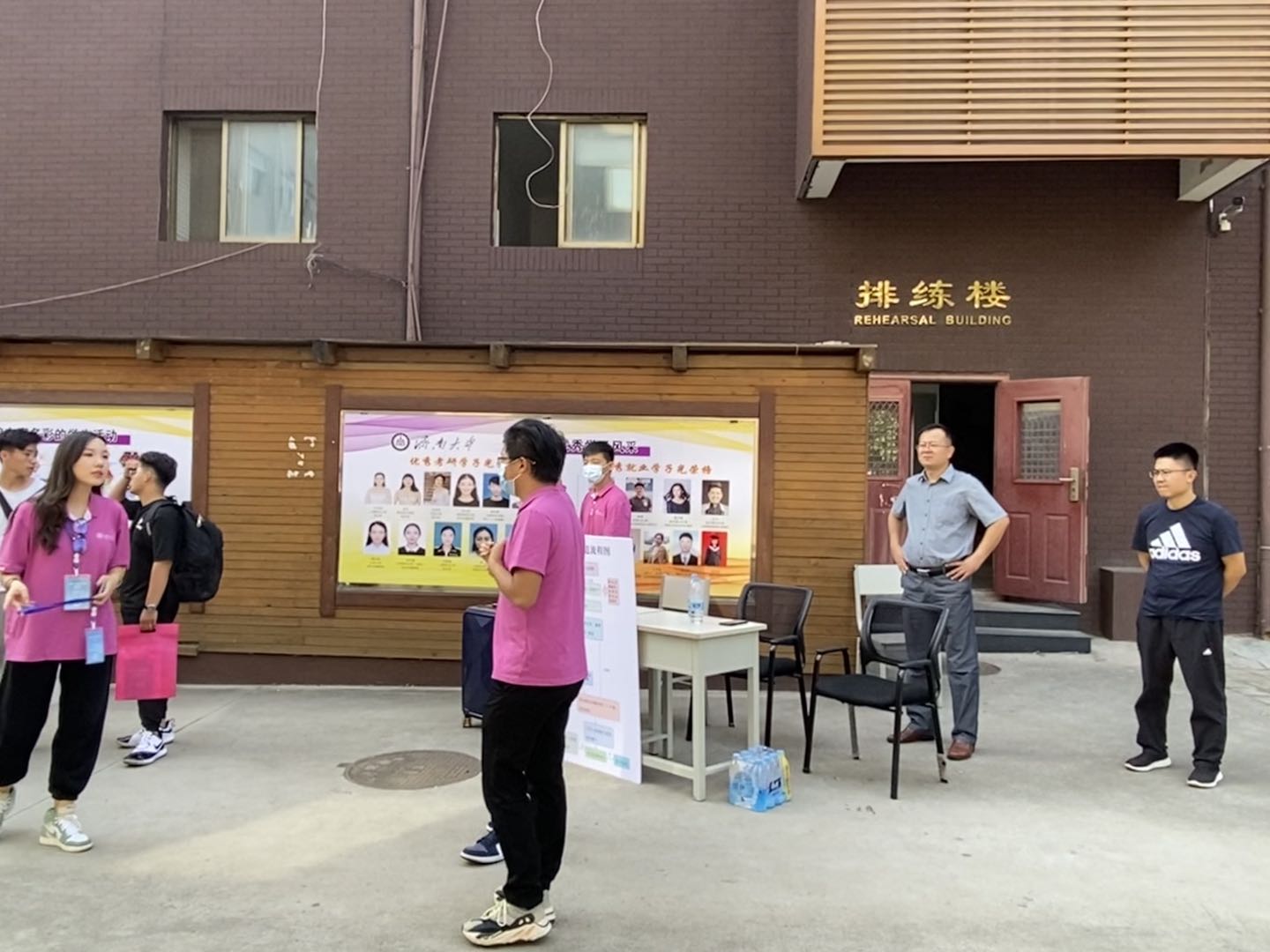 小萌新们带着自己的行李满怀期待的来到报道点,新生班助们早早的将萌新们的钥匙、学生卡等物品准备完毕,热情的迎接他们。报道点、学院门口、宿舍楼下……随处可见他们忙碌的身影。学院领导在迎新现场与前来报到的2020级新生亲切交流并慰问现场工作人员与志愿者。