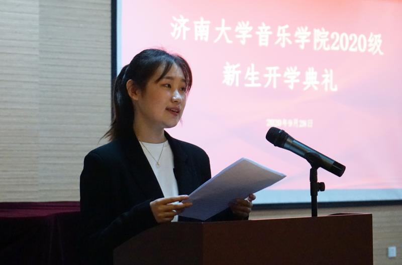 学院院长郑中发表了热情洋溢的讲话,她首先表达了对2020级199名新同学的热烈欢迎,并对同学们提出了新的要求和殷切期望。郑院长指出,作为新时代大学生,要迅速转型,积极实现从高中生到大学生的转变,尽快适应大学生活,在大学里筑梦理想、规划未来;树立远大目标,将国家发展与自我成长成才相结合;脚踏实地,养成良好生活习惯、学习习惯、行为习惯。郑院长希望同学们秉承“音和乐谐、德艺双馨”的院训和“勤学乐教、敢于担当”的院风,勤奋学习,开拓创新,以百倍的热情和昂扬的斗志,投入到每天的学习和工作中,不负当下,只争朝夕,书写属于自己青春的华丽篇章。