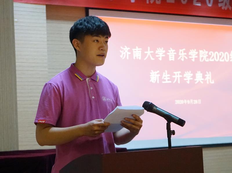 新生代表颜雨鑫同学代表全体新生分享思考与展望。他表示,大学是人生的重要阶段,是独立生活、承担社会责任的开端。作为刚步入大学的大一新生,要自强不息,争做新时代不负韶华只争朝夕的好青年;要勤奋乐学,开启求知学艺的新篇章;要严以自律,用实际行动树立个人良好形象。