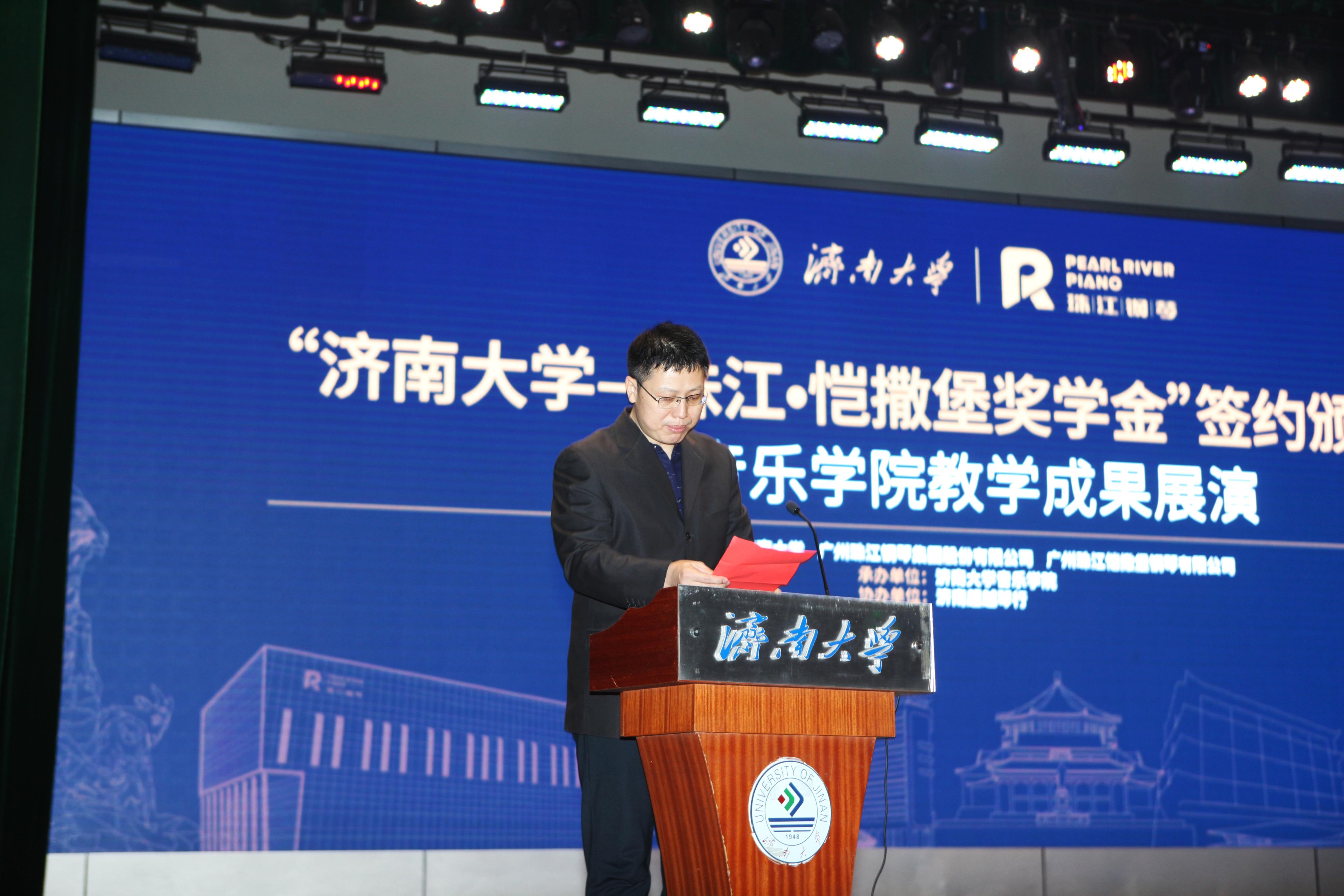 12月22日下午,“365英国上市—珠江•恺撒堡奖学金”签约颁奖典礼暨英国365集团教学成果展演在大礼堂隆重举行,365英国上市党委副书记张硕秋、广州珠江钢琴集团股份有限公司副总经理陈宣德出席活动并讲话,党委学生工作部(处)、合作发展处、团委相关负责人以及英国365集团部分师生参加典礼。