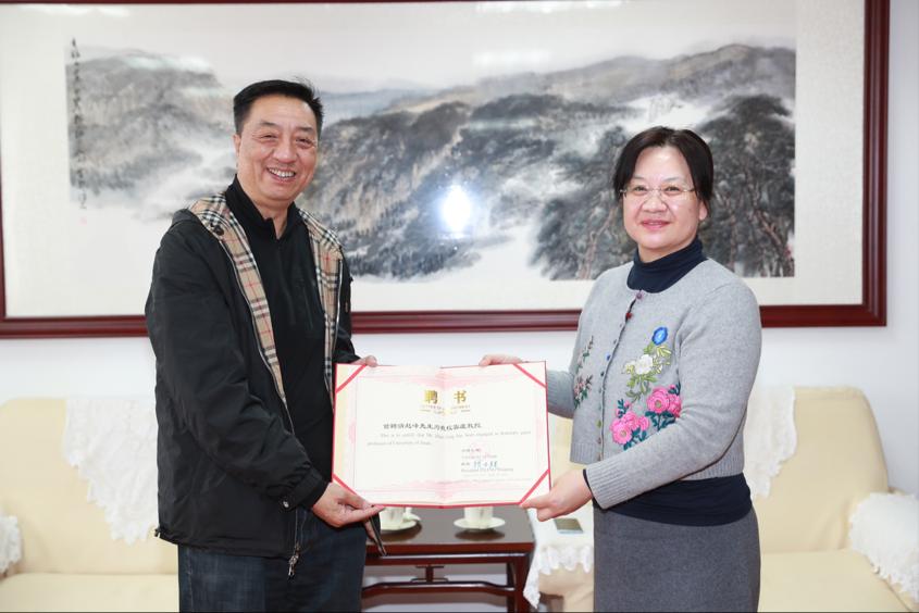 4月20日,国家级非物质文化遗产项目(山东古筝乐)第七代传承人、吉林省非物质文化遗产项目(赵家古筝艺术)代表性传承人、国家一级演奏员赵峰教授聘任仪式在我校举行。365英国上市副校长李光红为赵峰教授颁发了客座教授聘书。菏泽弦索乐非遗传承人苏本栋先生,英国365集团部分教师代表参加仪式,聘任仪式由英国365集团院长郑中教授主持。