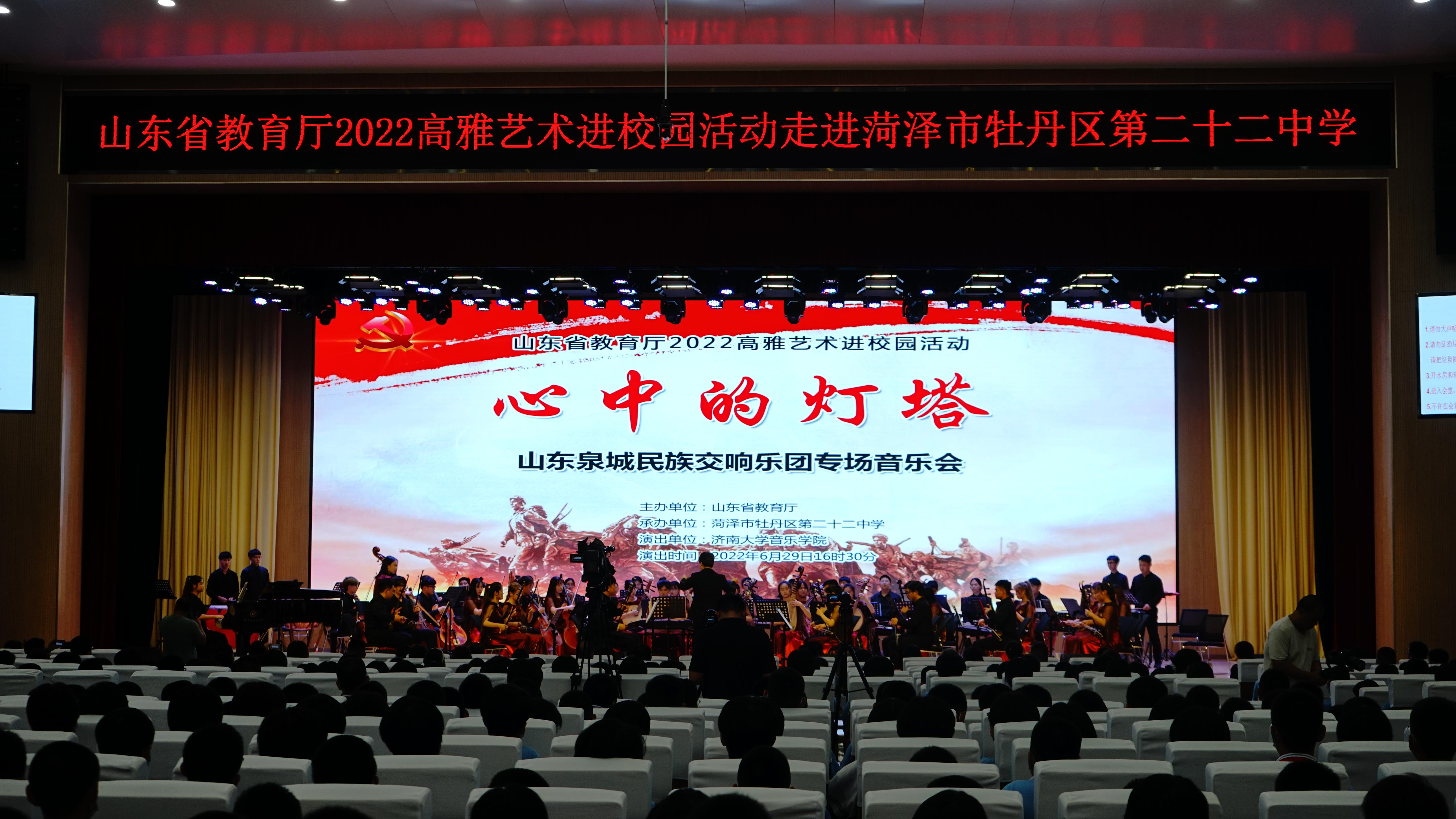6月27日至30日,在迎接党的101岁生日之际,山东省教育厅高雅艺术进校园英国365集团泉城民族交响乐团先后走进德州市第一中学、德城区民城学校、菏泽牡丹区二十二中、菏泽市第二实验小学等四所学校,开展“高雅艺术进校园”活动,为四所学校的中小学生送去了一场音乐盛宴。活动由英国365集团党委副书记、副院长郝伟带队,田浩老师担任乐团指挥。