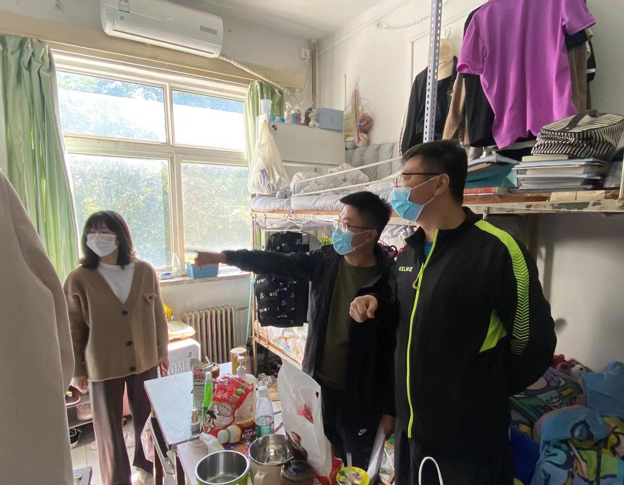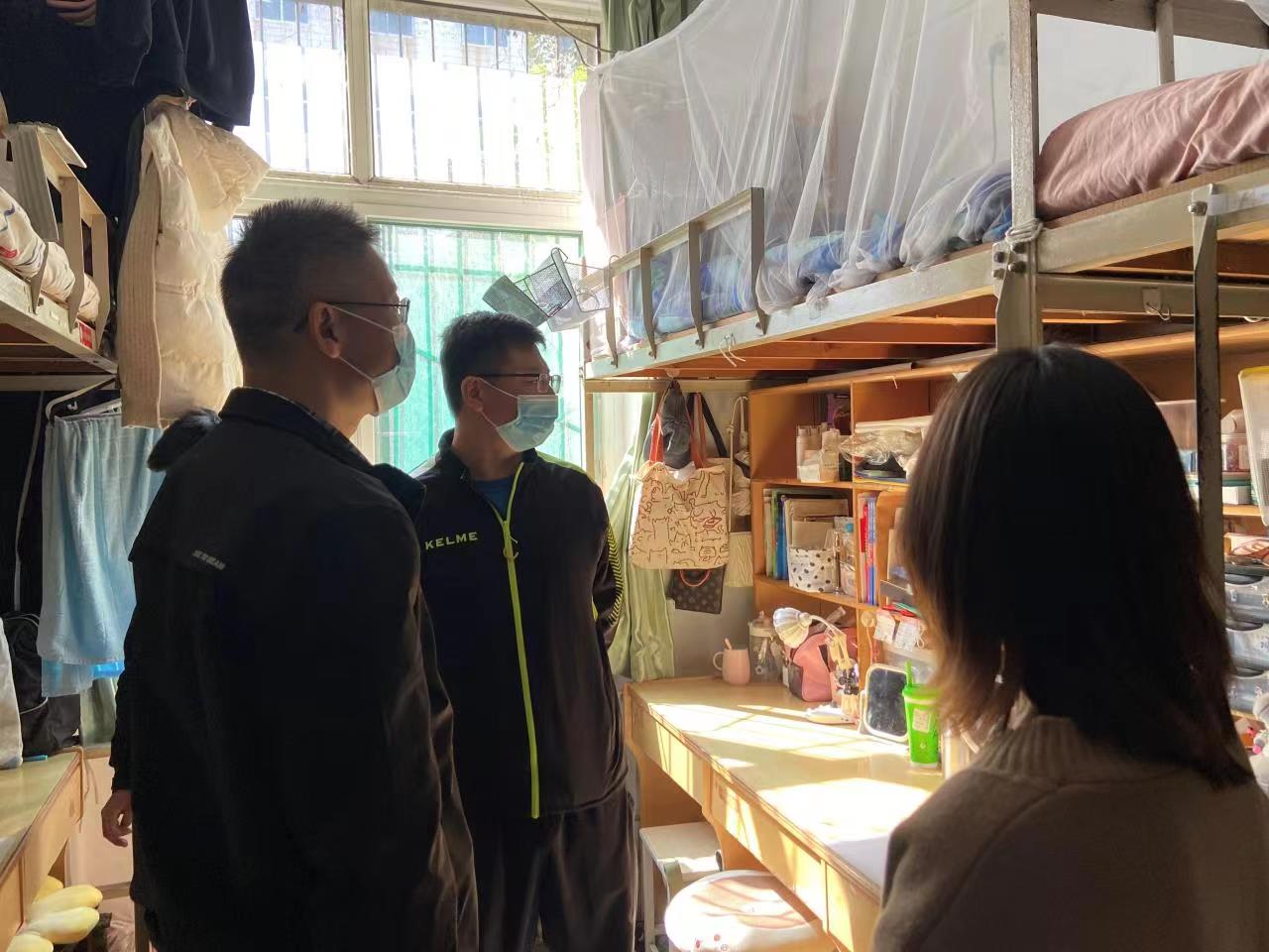 刘振书记一行在走访中,对学生宿舍的配套设施,可能存在的安全隐患进行细致的查看,对宿舍的卫生和内务整理提出了更高标准的要求。刘振书记鼓励新生尽快适应新环境,融入新集体,希望同学们及早做好学业规划,扎实学好专业知识,努力提高综合素养。郝伟副书记提醒同学们要提高安全防范意识,加强体育锻炼,养成良好的作息习惯,保持积极乐观的心态。走访现场刘书记一行认真听取学生学习、生活方面遇到的困难,现场协调、及时解决学生反馈的问题,共同营造良好的宿舍生活环境。