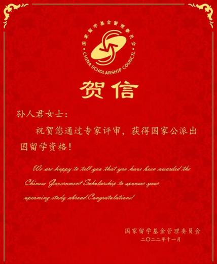 近日,国家留学基金委(China Scholarship Council) 公布了2022年高等学校青年骨干教师出国研修项目资助名单。经过学院推荐、学校筛选、专家评审、国家留学基金委严格审核等层层选拔,最终,我院孙人君老师喜获国家留学基金委公派全额资助,将赴瑞士开展为期一年的访问与交流。