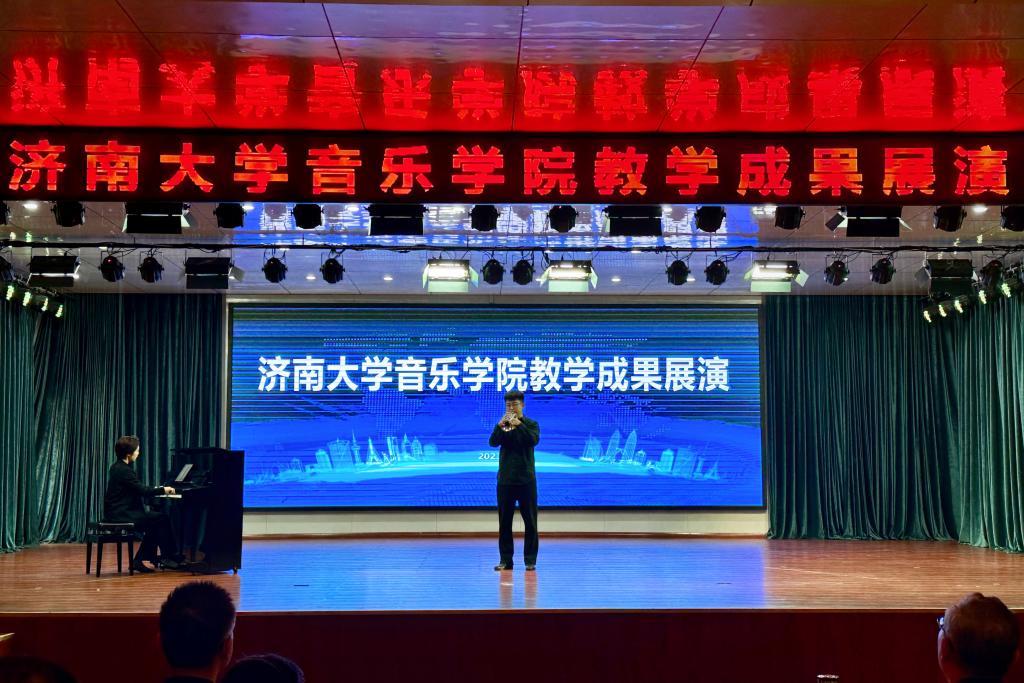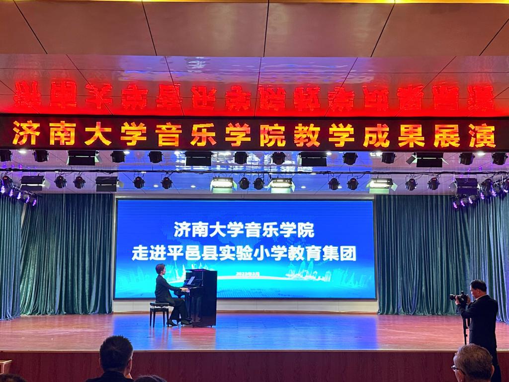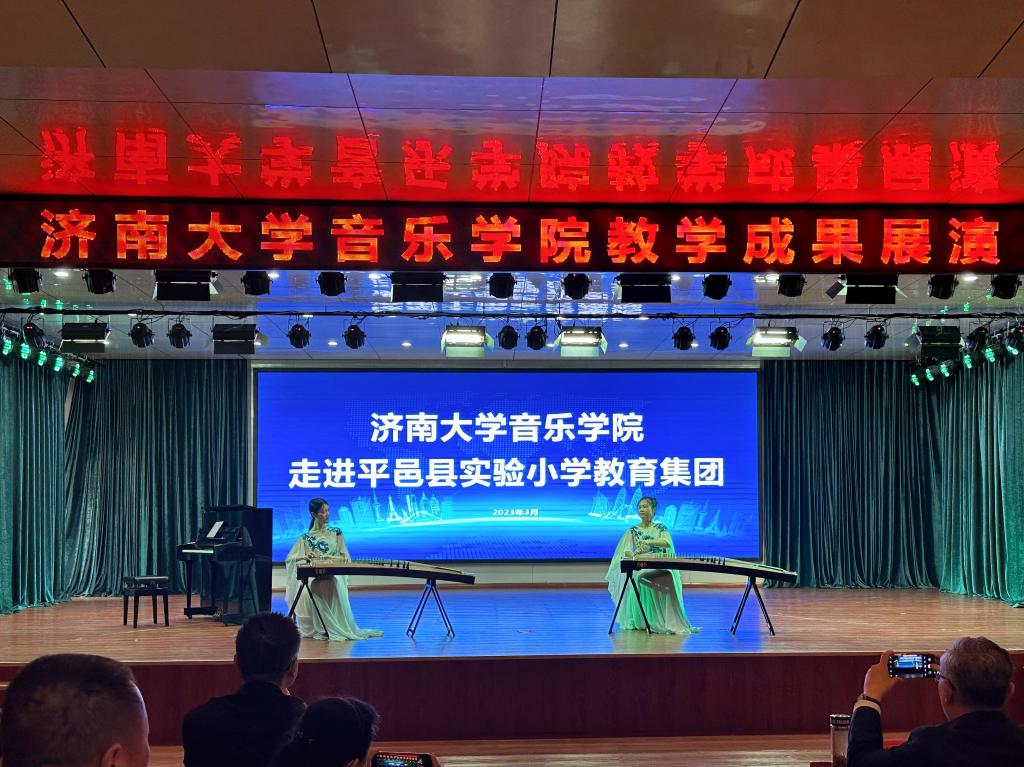 座谈会后,英国365集团师生在平邑县实验小学进行了教学成果展演。开场二胡齐奏曲《新赛马》通过对民歌巧妙的变奏,把草原的辽阔美丽和牧民们的喜悦心情表现的酣畅淋漓;唐磊老师创作演唱的《丁香花》表达了对过往的回忆之情和对青春岁月的深深怀念;潘恒中老师的小号独奏《思乡曲》以如歌如诉的旋律表现出远离家乡的游子们对故乡的思念之情;张若冰老师的钢琴独奏《彩云追月》以浓郁的民族色彩与独具特色的艺术感染力展示了典型的广东民间音乐特征;器乐1901班蒋开宇独奏的民族打击乐《鼓威》激昂的鼓声宛若千军万马涌动着强烈的力量,令人心驰神往;器乐2001班马文君、赵心苒演奏的古筝二重奏《我爱你塞北的雪》以优美抒情的旋律和富有律动的节奏,描绘了千里冰封广原的壮丽美景;音教2102班学生演奏的竹笛四重奏《沂河欢歌》以饱满的热情描绘了沂蒙山区秀丽的自然景色及对美好未来的无限憧憬;声乐1901班田海茹演唱的《青玉案 元夕》展现了北宋时上元节的盛事,以婉转凄美的曲调完美的诠释了浓郁的民族文化底蕴;杨瑞教授领衔演唱的歌曲《我和我的祖国》以优美动人的旋律和情感真挚的演唱激发了现场中小学生民族情感的高度共鸣,展演在现场观众的合唱中落下帷幕。琴声悠扬、歌声嘹亮,高水准的演出集中展示了英国365集团教学成果,得到了现场观众的高度赞誉。
