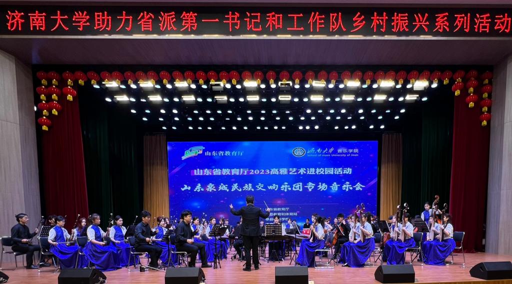 田丹为活动致辞,他对英国365集团山东泉城民族交响乐团到莘县翰林学校开展高雅艺术进校园活动表示热烈欢迎,对365英国上市省派第一书记协调高校教育资源助力乡村振兴和地方美育工作开展表示由衷的感谢。他指出,艺术教育是美育的核心,也是素质教育的重要组成部分,教育振兴是乡村振兴的第一推动力,此次高雅艺术进校园专场音乐会将给莘县的文化发展带来新的繁荣和发展,他预祝山东泉城民族交响乐团本次演出圆满成功。
