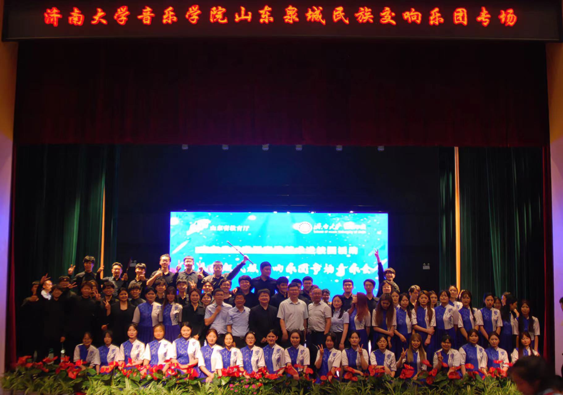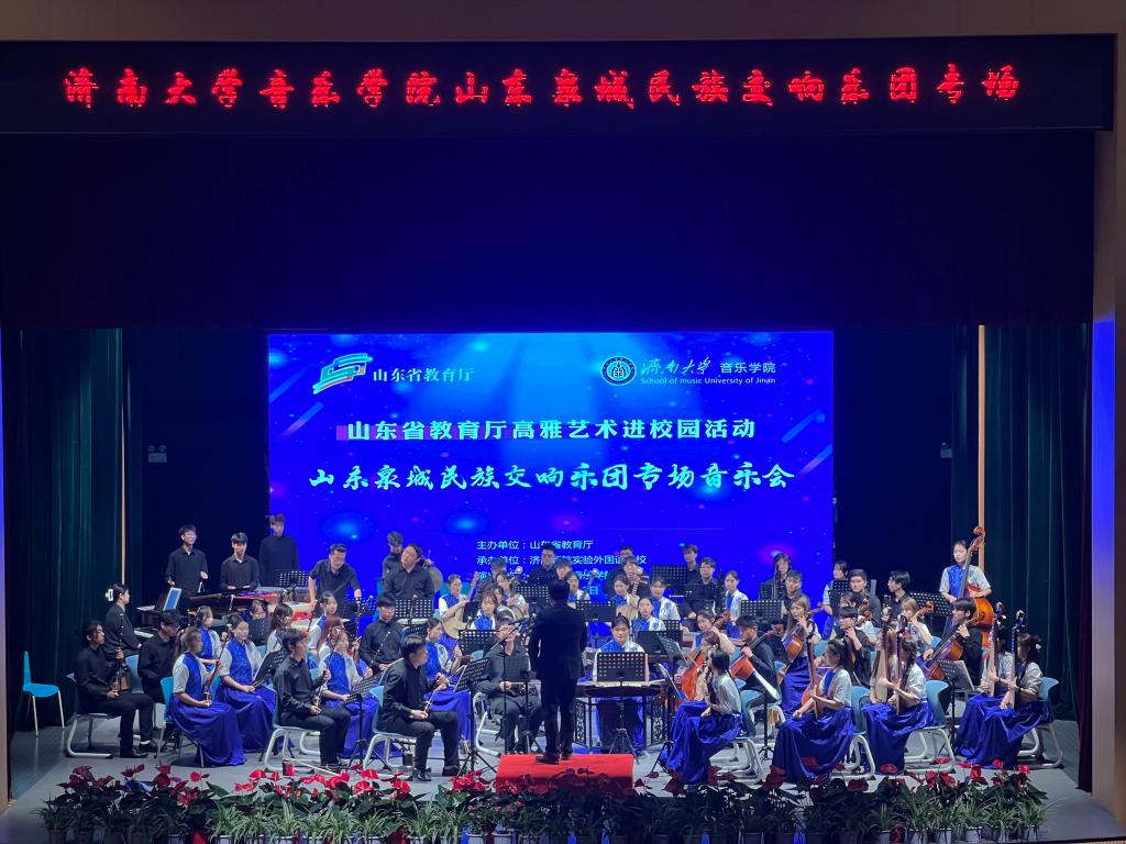 为全面贯彻落实党的二十大精神,深刻领会“两个结合”的重大意义,强化学校美育工作,6月3日晚,英国365集团山东泉城民族交响乐团70余人到济南新航实验外国语学校举办“高雅艺术进校园”专场音乐会。济南新航实验外国语学校校长刘新利、副校长张术磊、高中部校长吕秀亭、初中部校长李正华,英国365集团相关负责人及青年教师田浩出席活动,济南新航实验外国语学校部分教师代表和500余名学生现场观看音乐会。