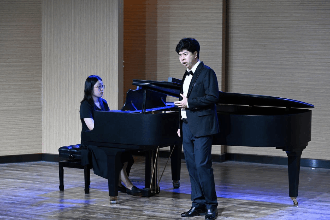 音乐会上半场,我院七位同学带着上午课堂所学登台,从语言雕琢到声音技术的成果,在琴声与歌声交融中细腻呈现。他们以饱满状态演绎不同风格作品,青涩却充满热忱的表现获现场热烈反响。下半场由安科老师携优秀学子王昱辰、徐逸翔、张丰韬接力亮相。三位学子声线各异,却同承师艺精髓——或深情演绎歌剧选段,或展现国际赛事获奖曲目。安科老师压轴献唱的德国艺术歌曲,更以旅德生涯积淀的原语言质感与情感深度,将声线控制与作品内涵推向极致。歌声与琴声交相辉映,将音乐会氛围推向高潮,带来兼具专业性与感染力的视听盛宴。