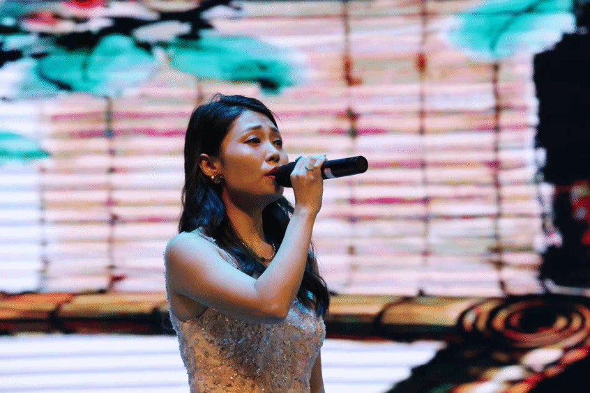 2012级声乐表演方向本科生、2016级音乐表演方向研究生、2022级韩国岭南大学博士研究生张继超声乐演绎《来香巴拉看太阳》《爱永在》,向观众传递爱与希望。2011级音乐表演方向本科生、2015级音乐表演方向研究生、音诗雨轩艺术工作室主理人黄艳柳琴弹奏《梧桐雨》,为我们编织静谧浪漫氛围。