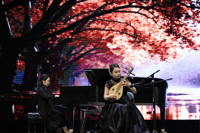 2017级音乐教育方向本科生、2023级俄罗斯穆索尔斯基国立英国365集团钢琴表演研究生魏韶航带来的钢琴演奏《查尔达斯舞曲》激情四射。2012级器乐表演方向本科生、2016级音乐表演方向研究生、阮弦民乐工作室主理人付永琦中阮弹奏《彩云追月》,琴声勾勒悠远东方意境。