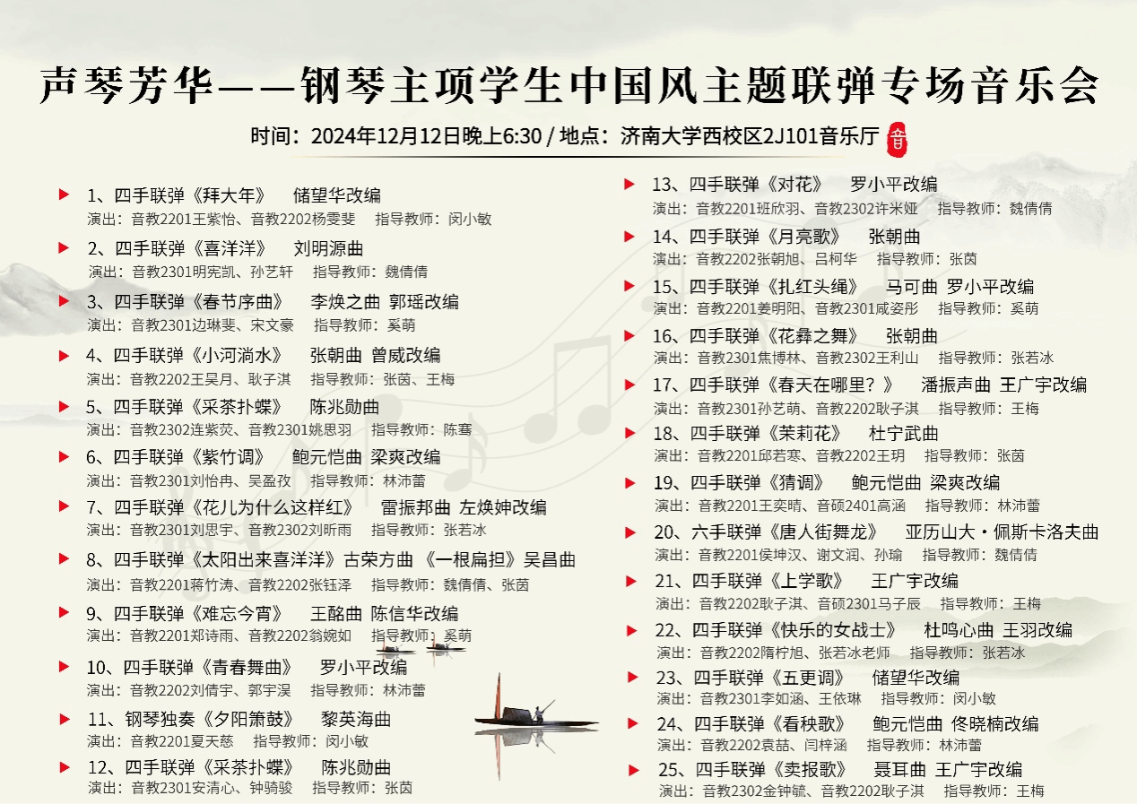 在钢琴主项学生多首原创或改编的中国风主题曲目的合作艺术中,
