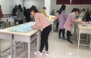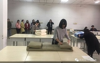 主持人做了简短的介绍后,自律部副部长辛梦进行讲话,预祝参赛选手们取得好成绩。第一轮比赛共十组参赛选手,只见选手们折被角、整理褶皱动作迅速,有条不紊。时间在紧张的气氛中悄悄流逝,选手们的作品一个个呈现在评委们面前,在评审团严格、公正的评比后,学16-119宿舍、学16-413宿舍、学16-208宿舍进入第二轮比拼中。第二轮进行的是桌面收纳比赛,难度升级,选手们依然从容应对,很快就将物品分类并摆放地整齐。选手们的家务收纳能力个个不容小觑。比赛尾声,学生会主席王建丽对比赛选手们的表现进行点评,并提出建议。