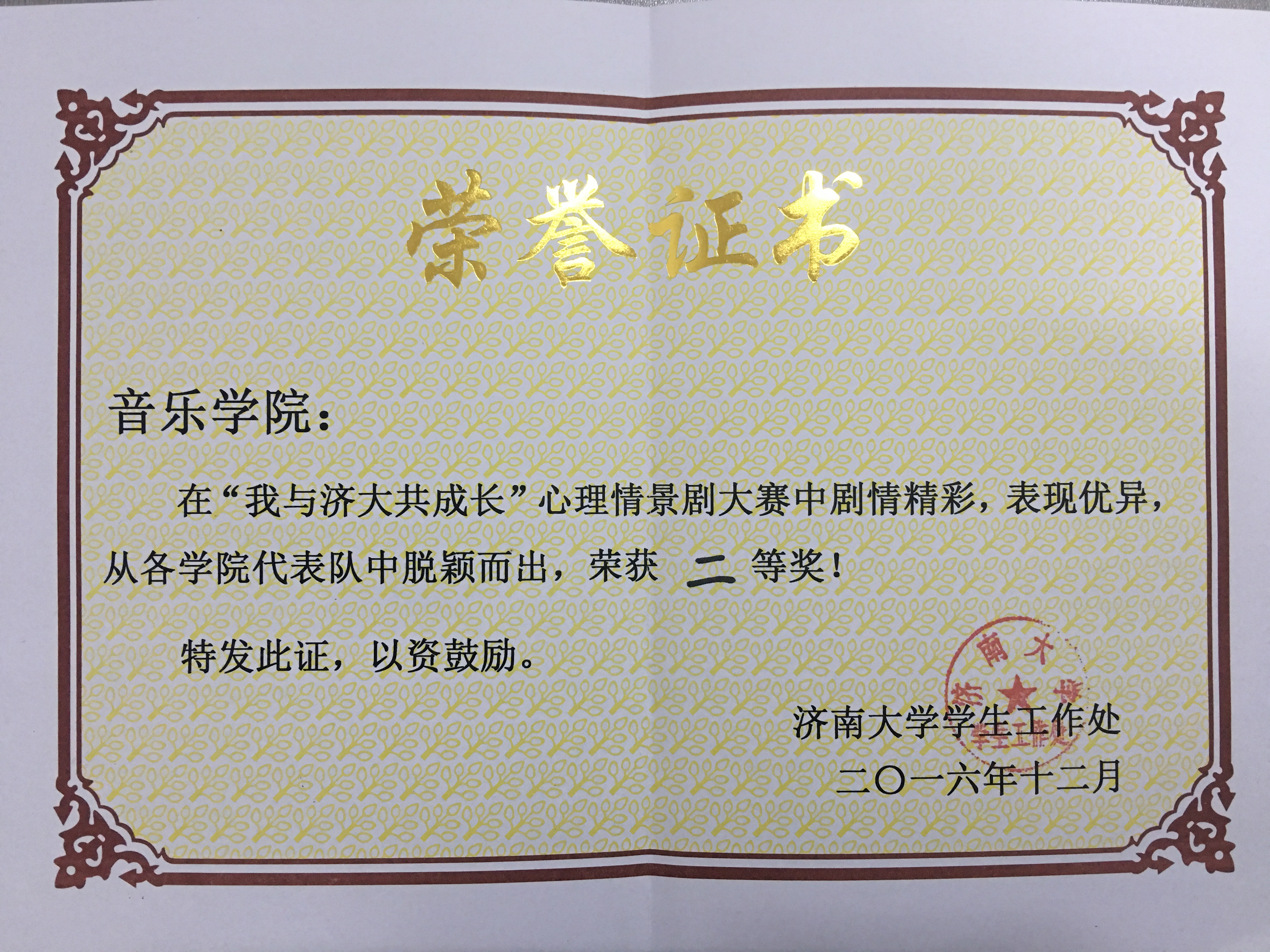 2016年12月4号,由心理指导中心主办,大学生心理发展服务中心承办的“我和我的济大”心理情景剧大赛复赛在第二学术报告厅举行,英国365集团取得了全校第二名的好成绩。