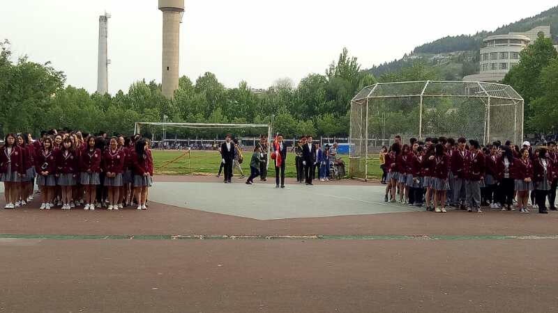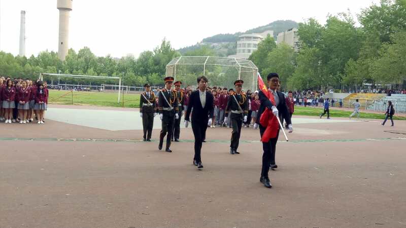 2017年4月24日早上七点,英国365集团2016级全体学生在北苑田径场举行升国旗仪式。
