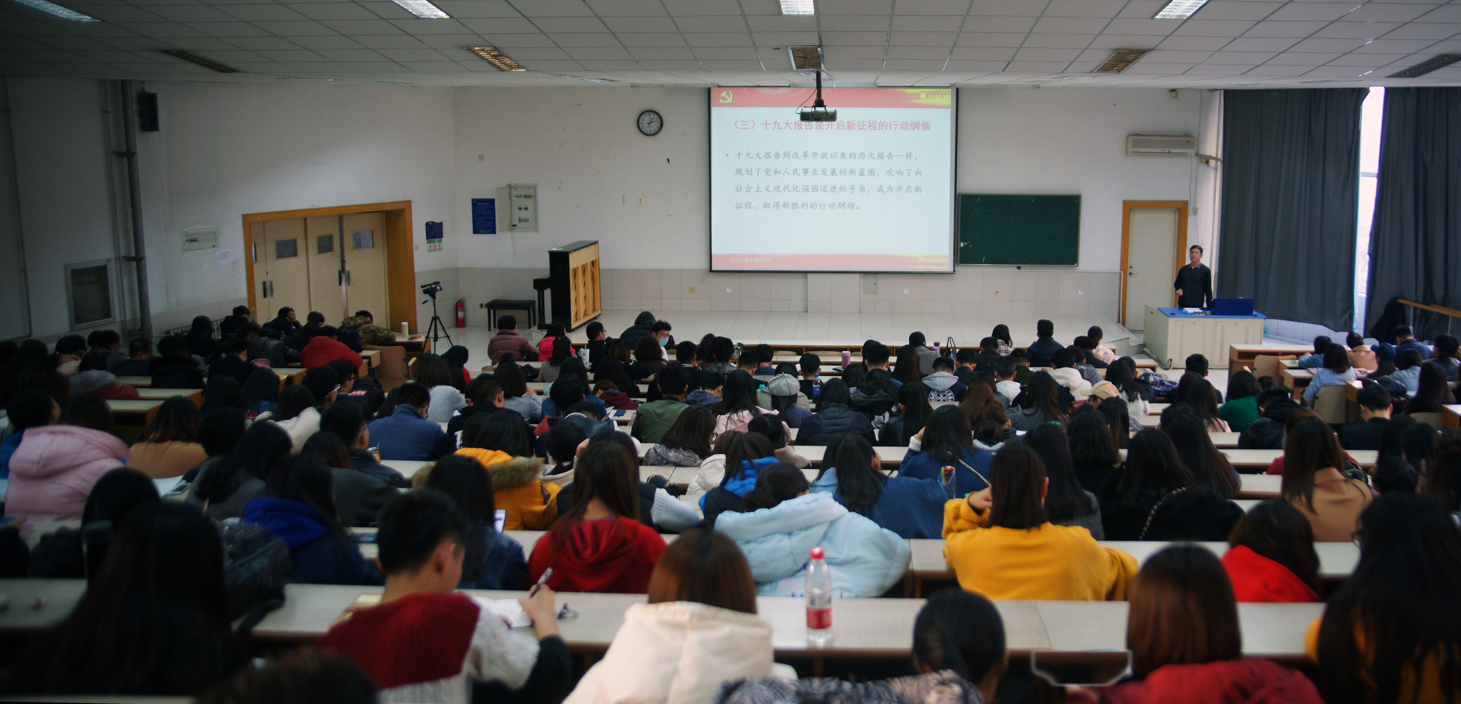 赵道会书记从十九大报告的重大意义、主要内容、重要亮点、和青年一代的历史使命等四个方面进行了重点解读。他说,党的十九大报告是闪耀着马克思主义光芒的新时代中国特色社会主义的政治宣言、理论指南和行动纲领;他从四个方面阐述了十九大报告的重要亮点,一是中国特色社会主义进入了新时代,二是中国共产党人的新使命,三是习近平新时代中国特色社会主义思想,四是中国特色社会主义建设的新阶段;最后,他用习近平总书记在十九大报告中对青年一代的嘱托向同学们提出要求,希望同学们牢记领袖嘱托,不负时代,不负人民,戮力奋进。