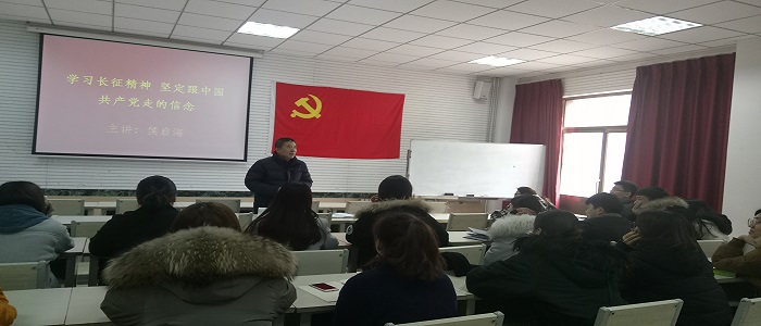 2018年3月20日,英国365集团学生党员在多媒体教室3举行“学习长征精神,坚定跟中国共产党走的信念”学习活动。学习活动由英国365集团党委书记侯启海主讲。